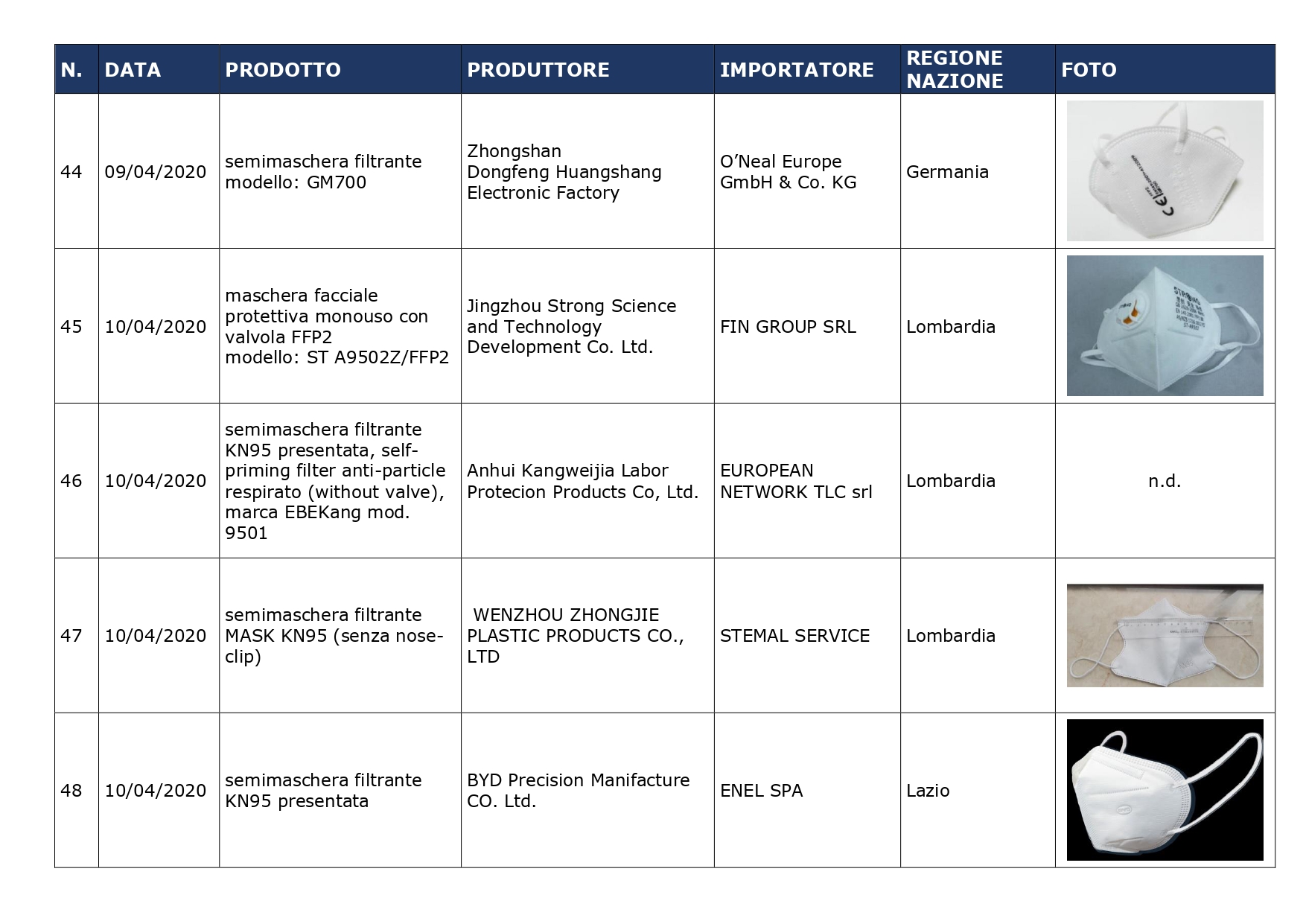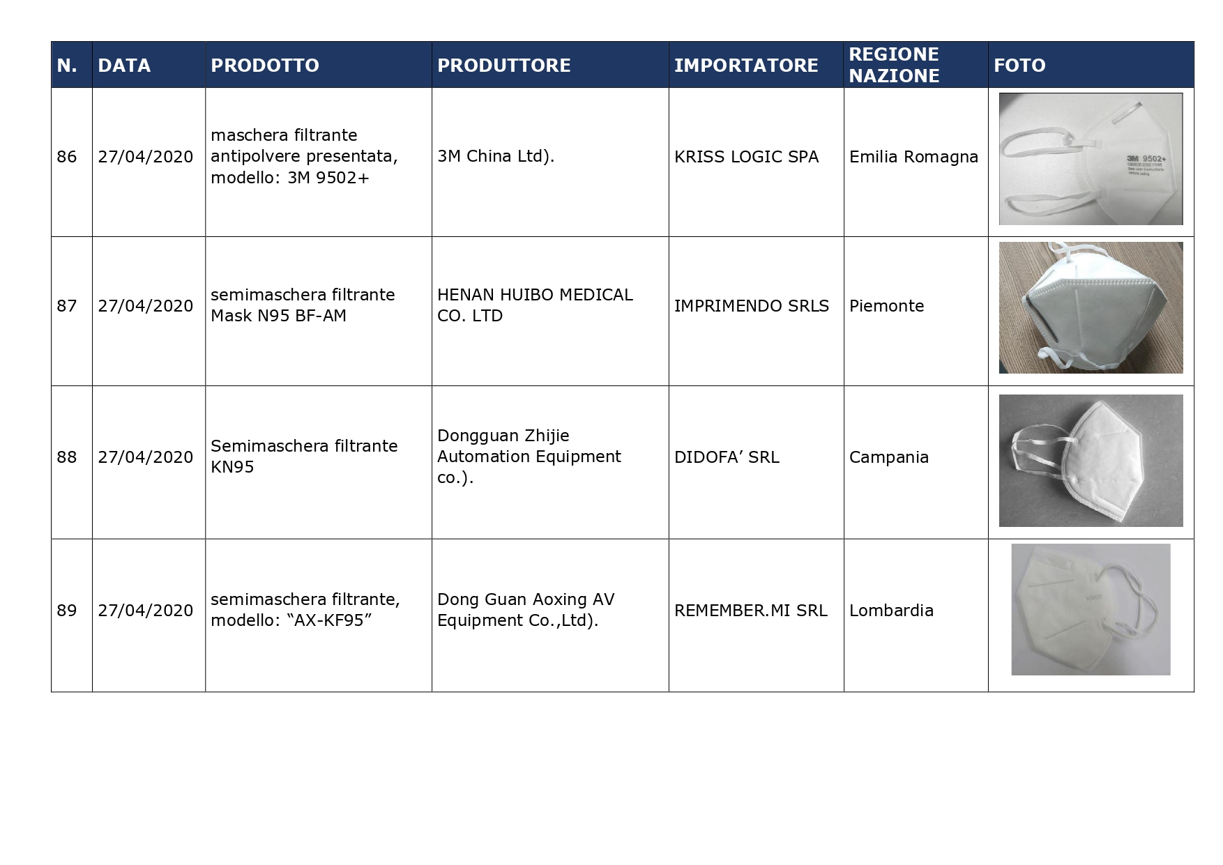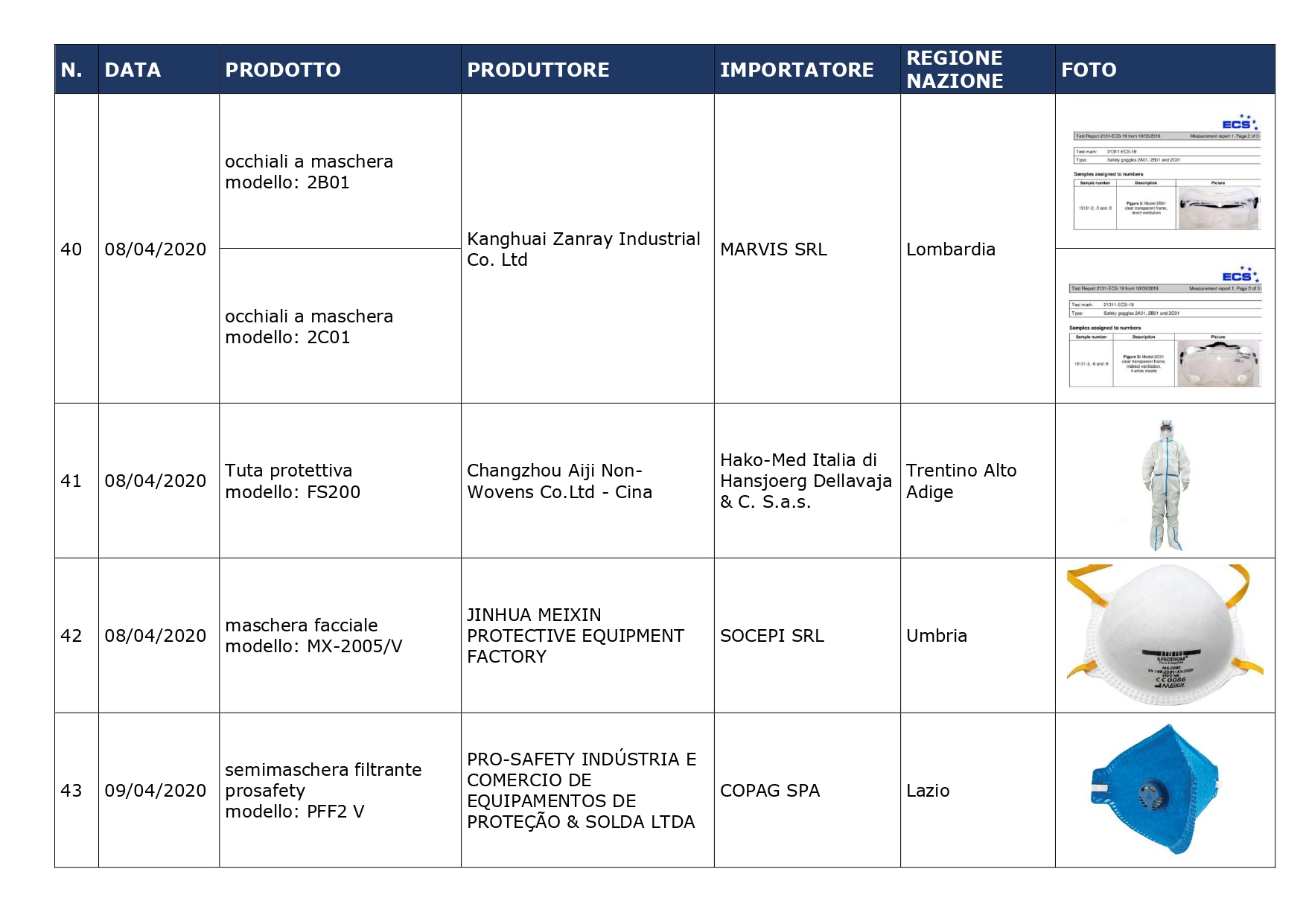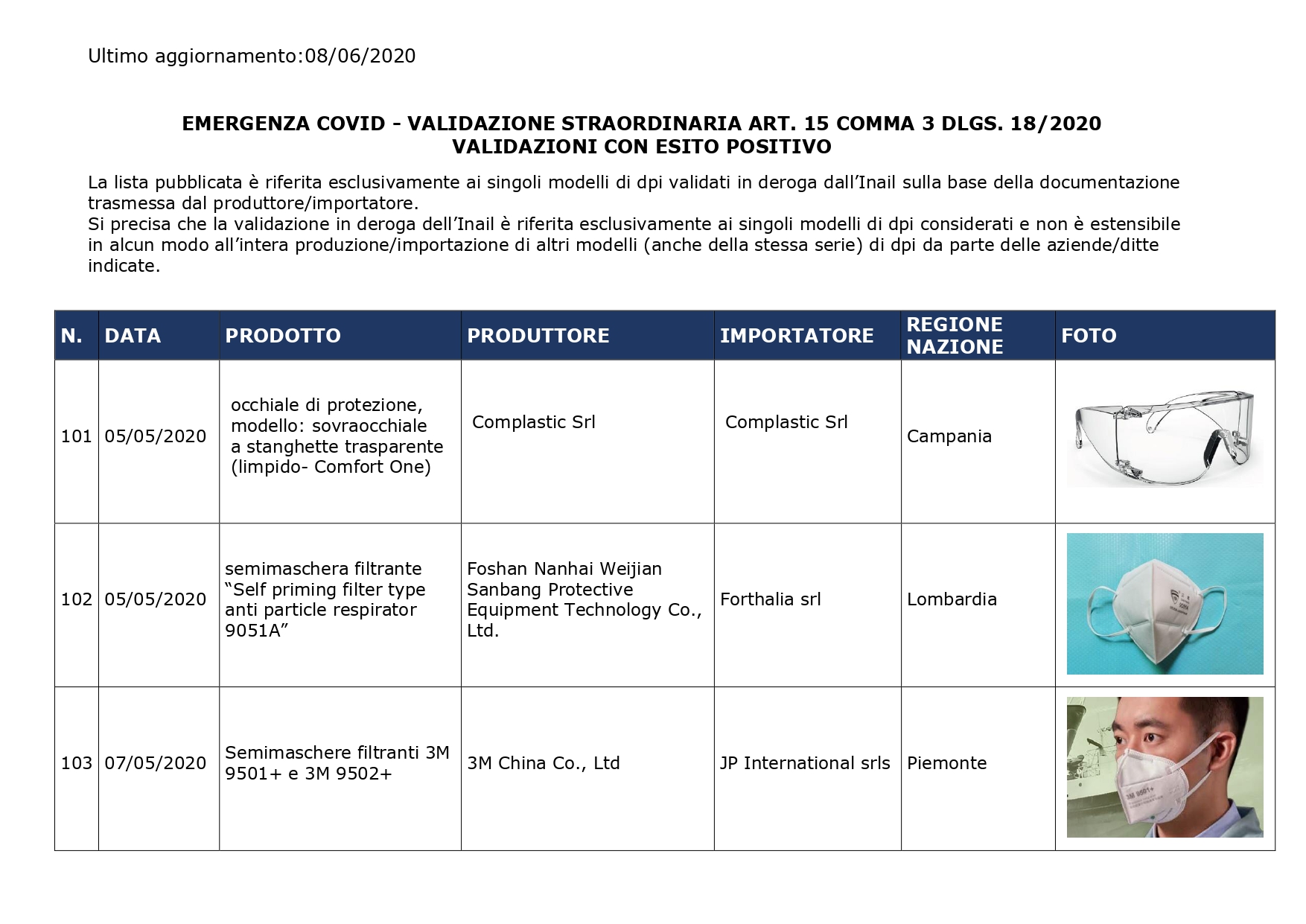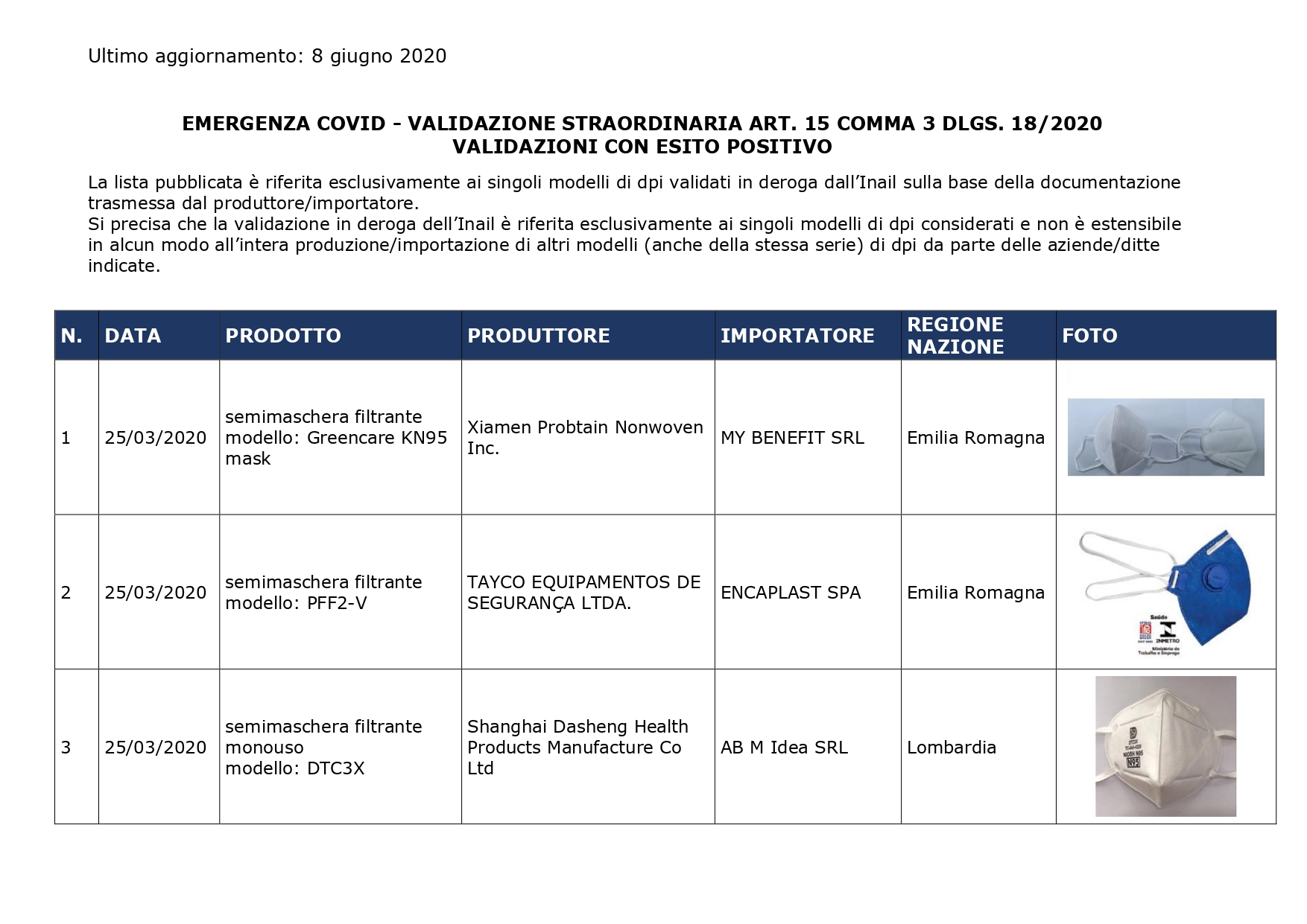 INAIL – Dispositivi di protezione – Emergenza