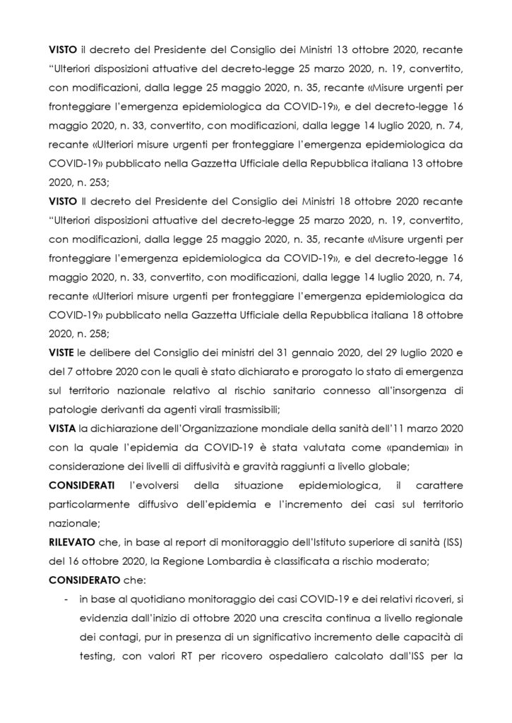 Ordinanza Regione Lombardia e Ministero della salute 21.10.2020 – Coprifuoco | Adlabor